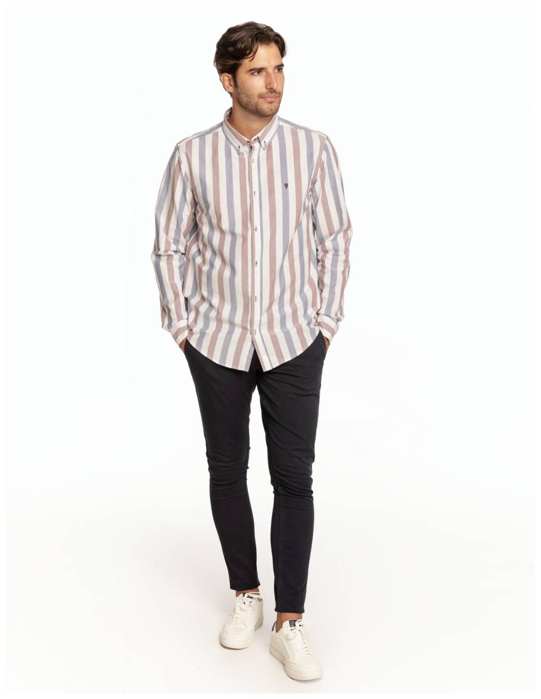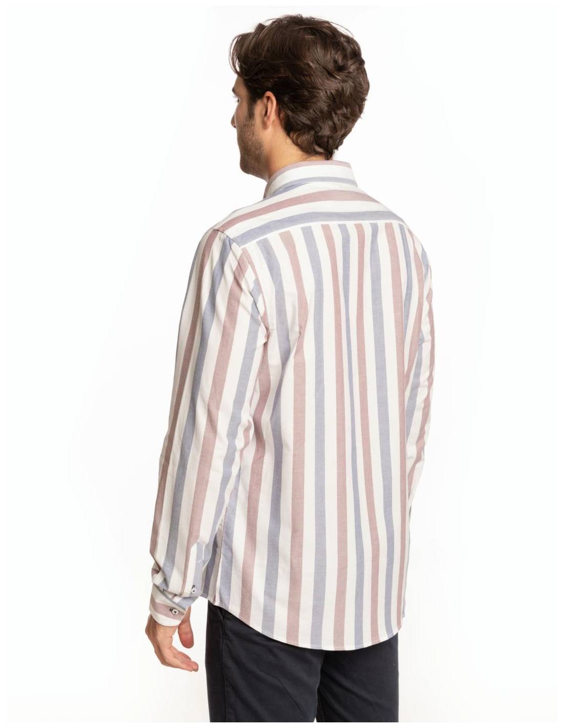 Camisa oxford con raya ancha en dos colores y 100% algodón. Su tejido la hace muy cómoda de llevar y su versatilidad te permite combinarla tanto para outfits más casuals y sport como para outfits más arreglados.