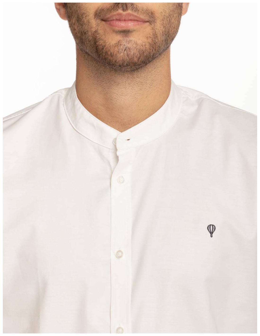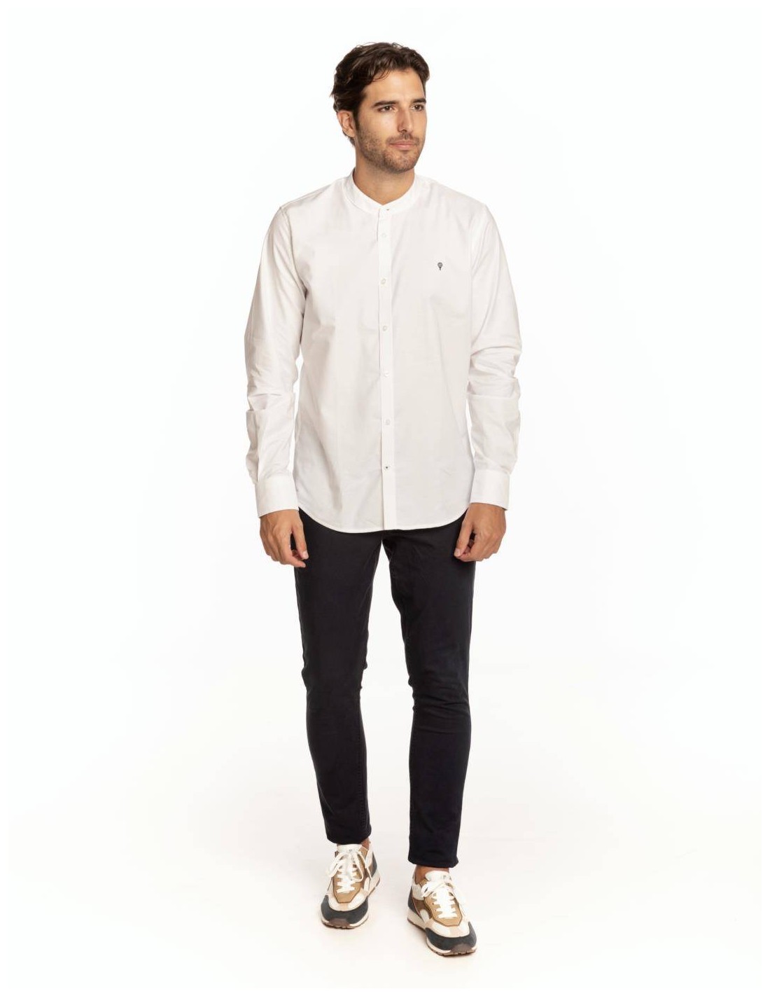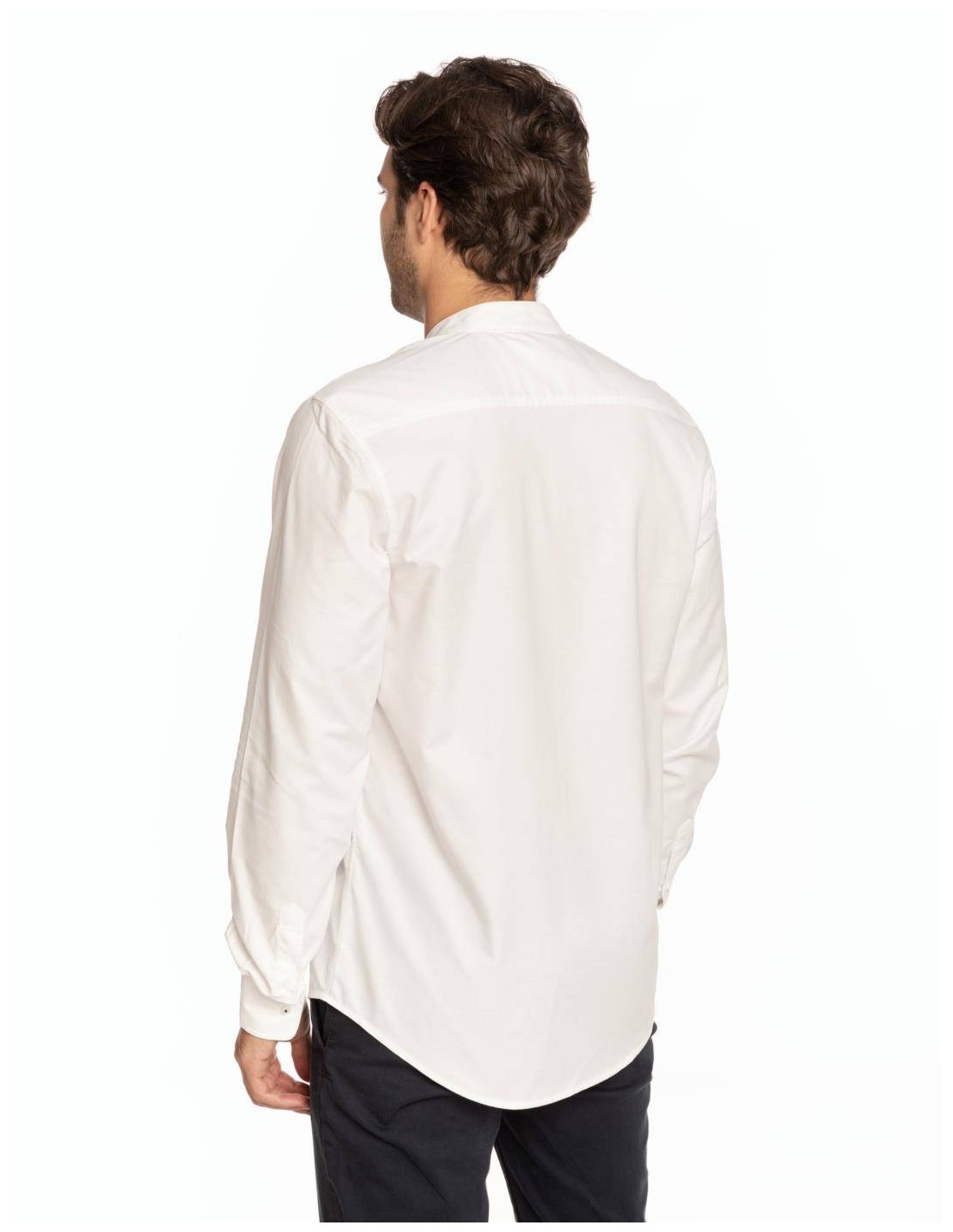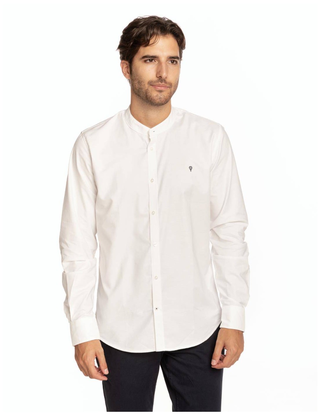 Camisa de hombre oxford cuello mao en color liso y logo en el pecho.